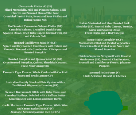 - Platinum Seafood Buffet Menu – See image below for menu